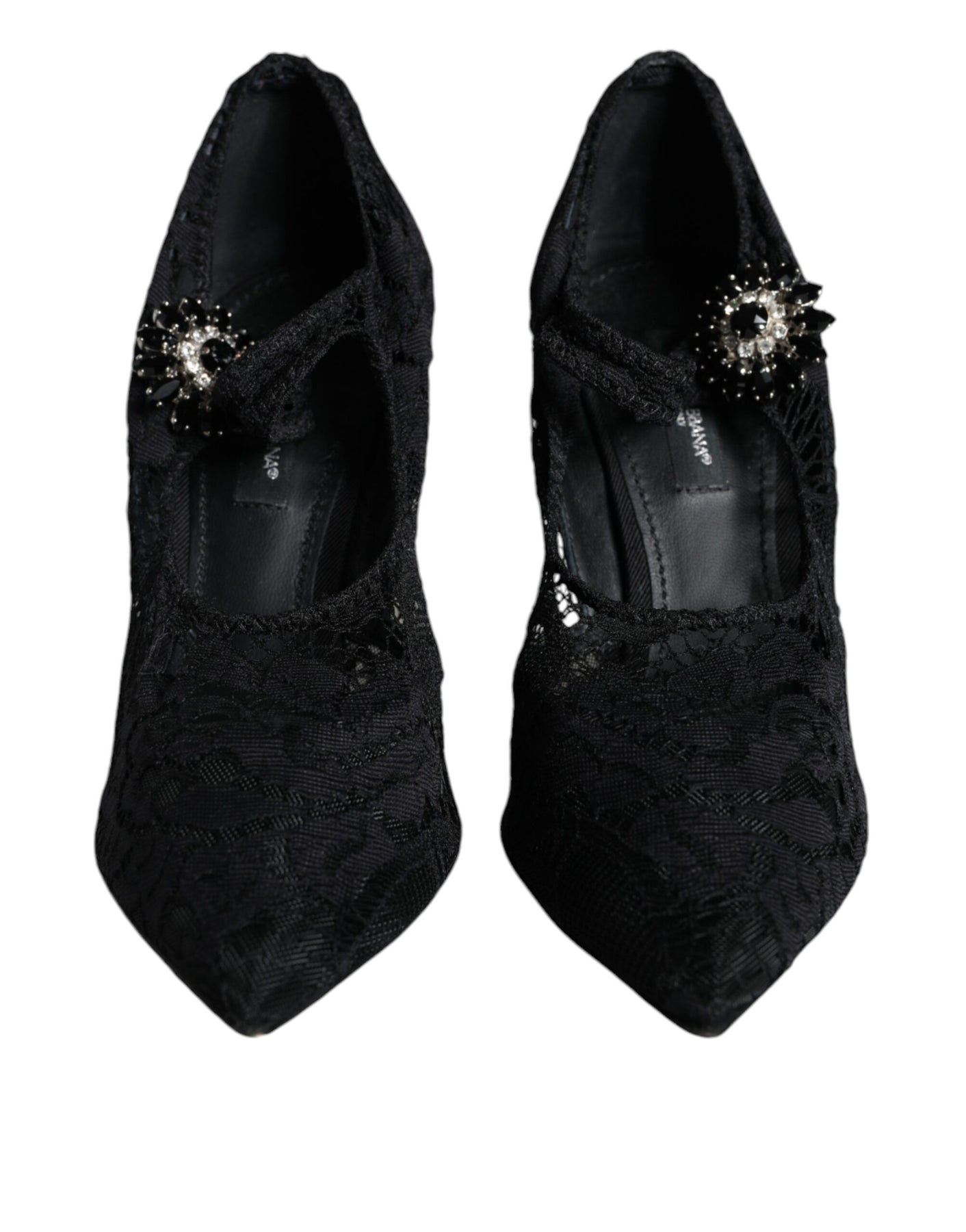 Gorgeous, 100% Authentic Dolce & Gabbana lace stiletto pumps. Strap embellished with crystals and a pointed toe.