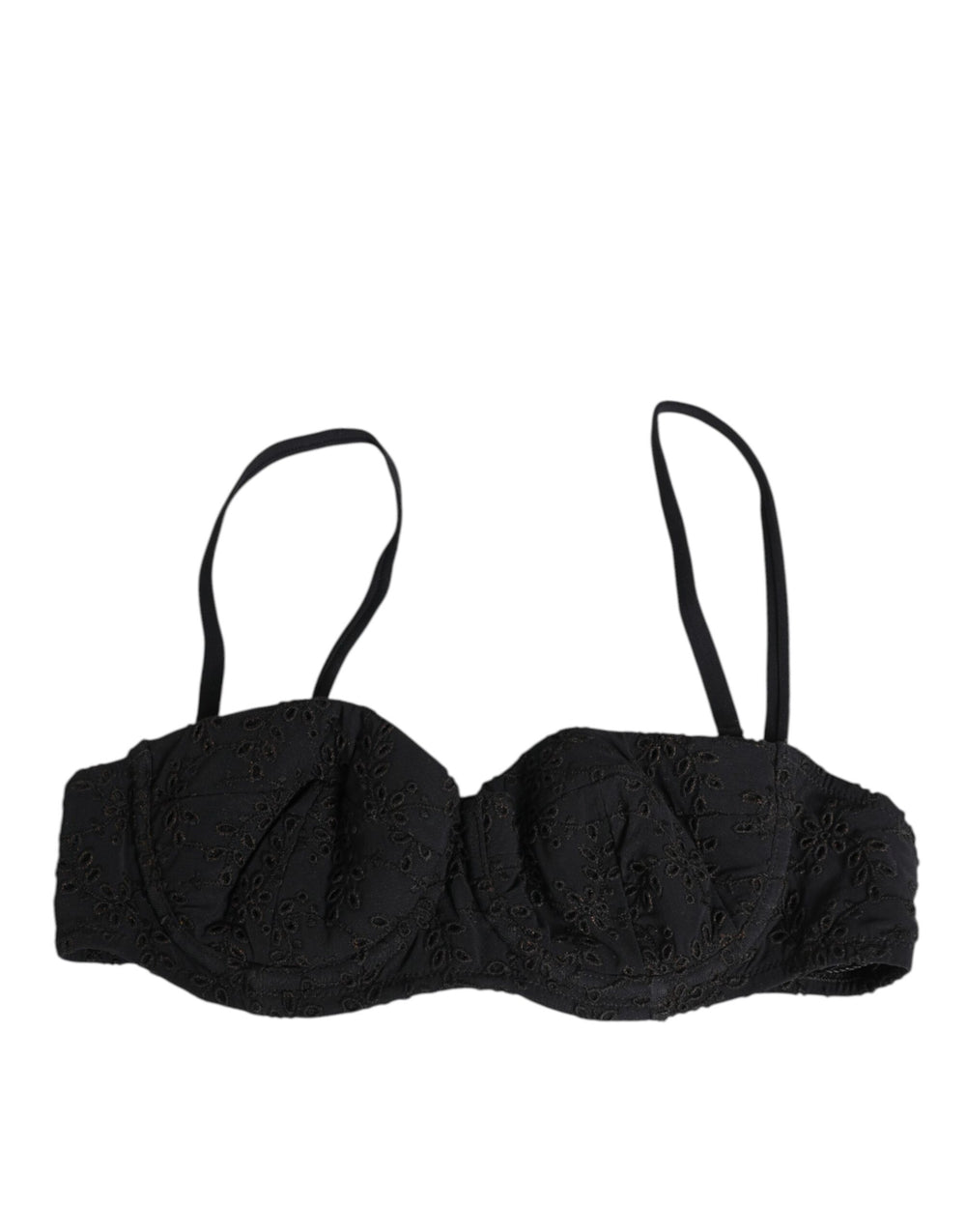 Black Floral Lace Nylon Balconcino Bra Underwear